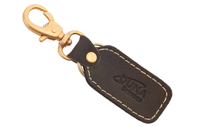 Chaveiro Palermo com mosquetão e argola,personalizado em baixo relevo.