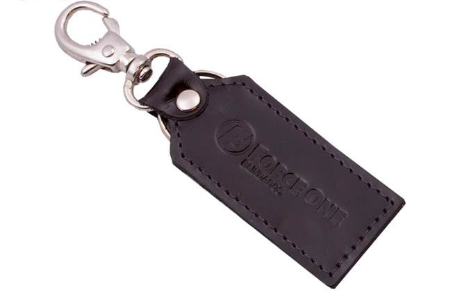 Chaveiro retangular com argola e mosquetão personalizado em baixo relevo.