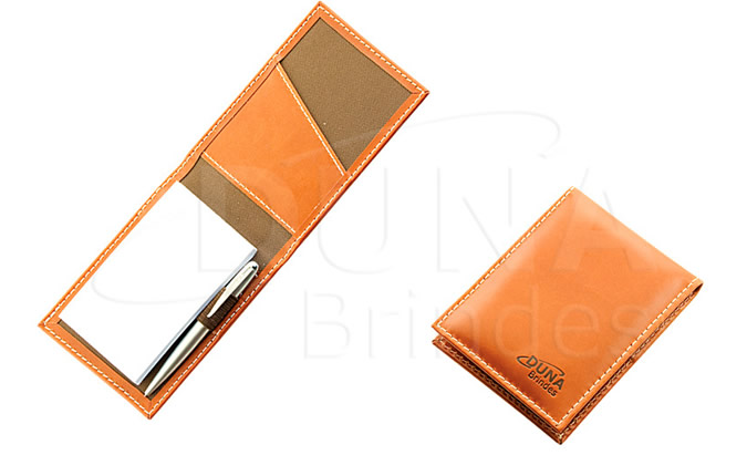 Porta Blocos confeccionado em couro legítimo, couro sintético ou couro ecológico (Recouro), porta caneta e bloco de anotações medindo 12 x 9 cm com 50 folhas. (Caneta não inclusa)