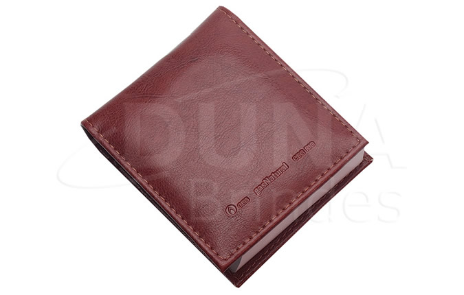Porta Bloco confeccionado em couro legítimo, couro sintético ou couro ecológico (Recouro). Bloco de anotações com 200 folhas medindo 9 x 9 cm. Porta Bloco personalizado em baixo relevo com sua logomarca.