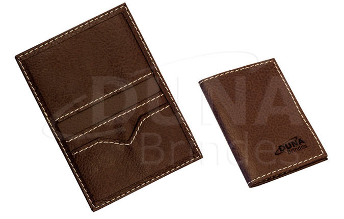 Porta cartão personalizado com três divisórias confeccionado em couro legítimo, couro sintético ou couro ecológico (Recouro) personalizado em baixo relevo.
