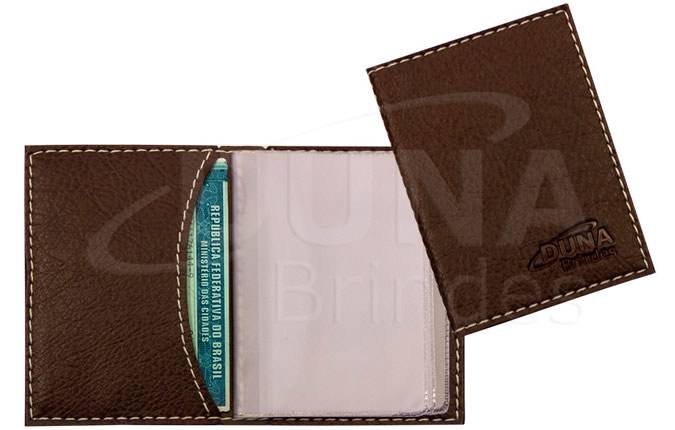 Porta Documento meia lua com quatro divisórias em pvc personalizado em baixo relevo ou silk screen. Porta documento confeccionado em couro legítimo, couro sintético ou couro ecológico (Recouro).