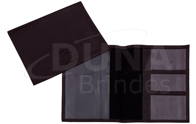 Porta Manual confeccionado em couro legítimo, couro sintético ou couro ecológico (Recouro) com três divisórias para cartão e duas para manuais. Porta manual Personalizado em baixo relevo ou silk screen com seu logotipo.