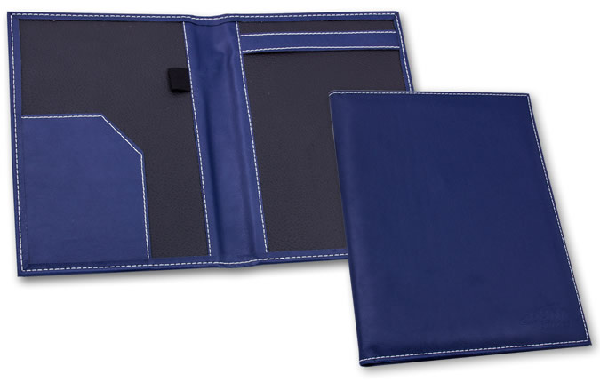 Porta Receituário contendo uma aba para encaixe de papéis, porta caneta e suporte para bloco de receita.