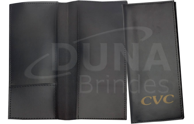Porta Voucher em em couro legítimo, couro sintético ou couro ecológico (Recouro), com porta cartões e aba para vouchers. Porta Voucher personalizado em baixo relevo ou silk-screen.