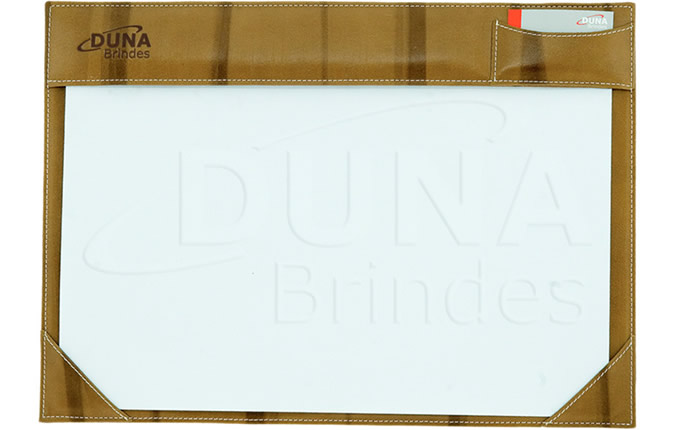 Risque e rabisque de mesa personalizado em baixo relevo com sua logomarca medindo 350 x 485 mm com porta cartão e 20 folhas A3. Risque e Rabisque confeccionado em couro legítimo, couro sintético ou couro ecológico (Recouro).