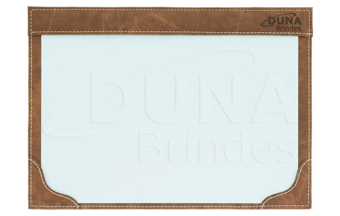 Risque e rabisque de mesa confeccionado em couro legítimo, couro sintético ou couro ecológico (Recouro). Tamanho 485 x 345 mm com 20 folhas A3. Risque e Rabisque personalizado em baixo relevo com sua logomarca.